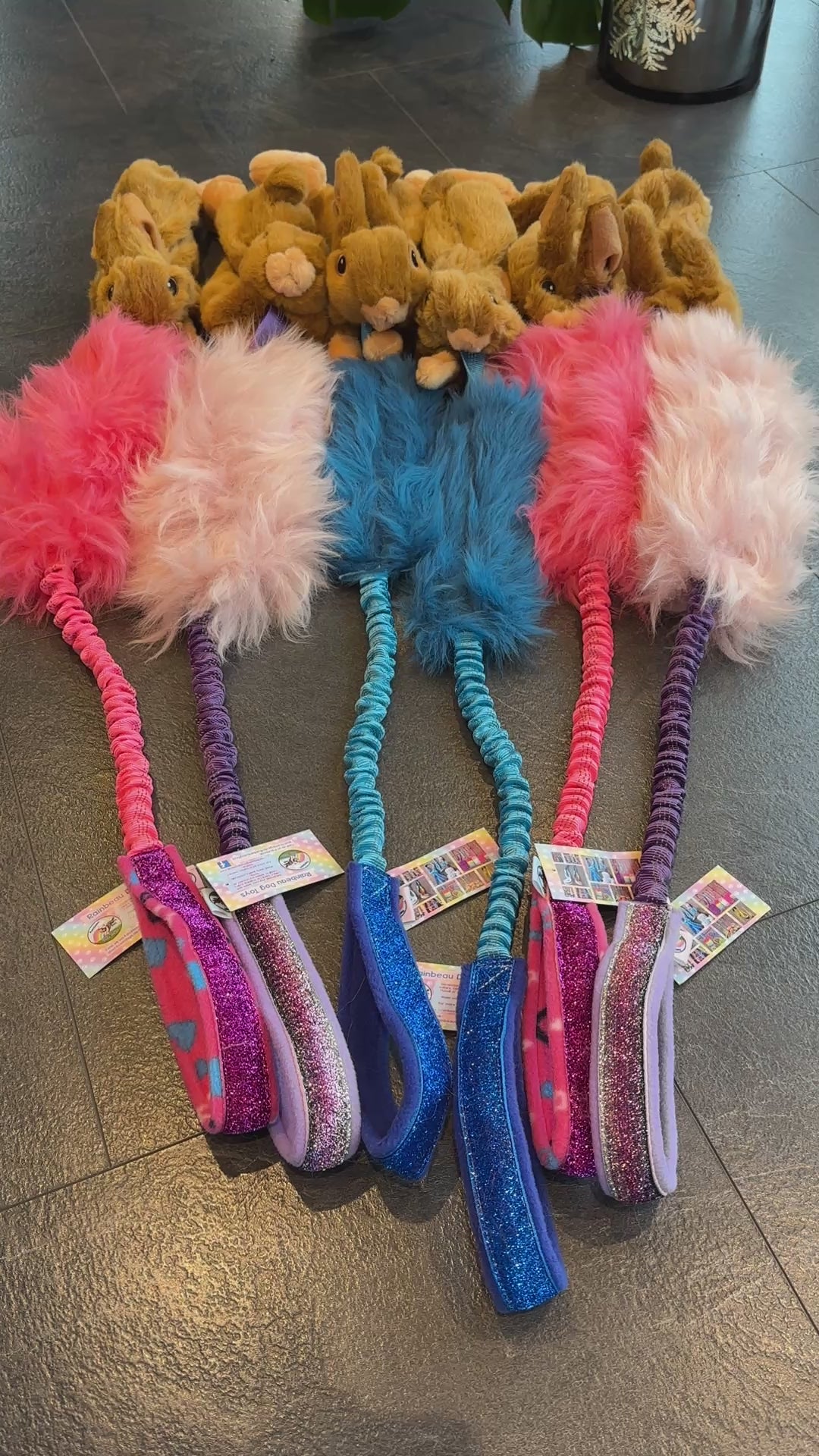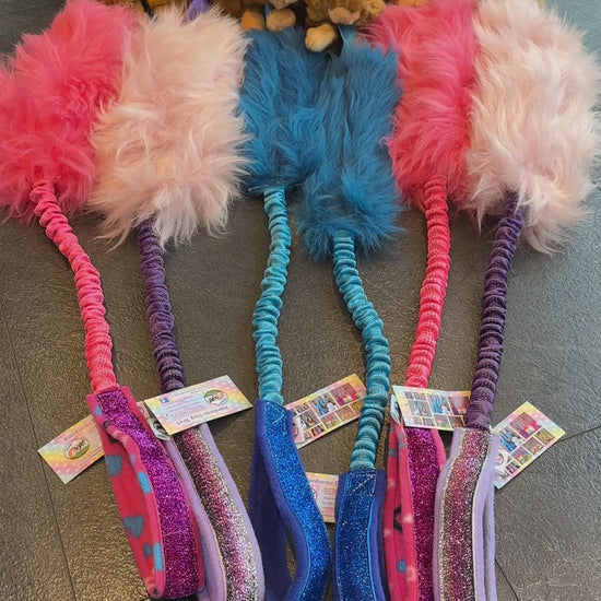 Håndtaket er kledd med fleece på innsiden for godt grep, og dekorert med glitter på utsiden for et friskt og lekent uttrykk. Leken kommer i freshe, livlige farger som gjør den ekstra motiverende og morsom for hunden.